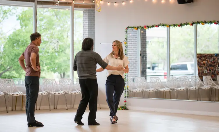 Technique-based adult group classes across ballroom, Latin, swing, and country, paced so skills stick and confidence grows, with instructors who keep things welcoming and clear.